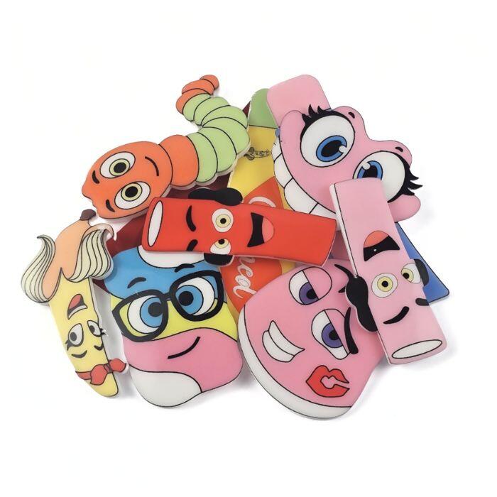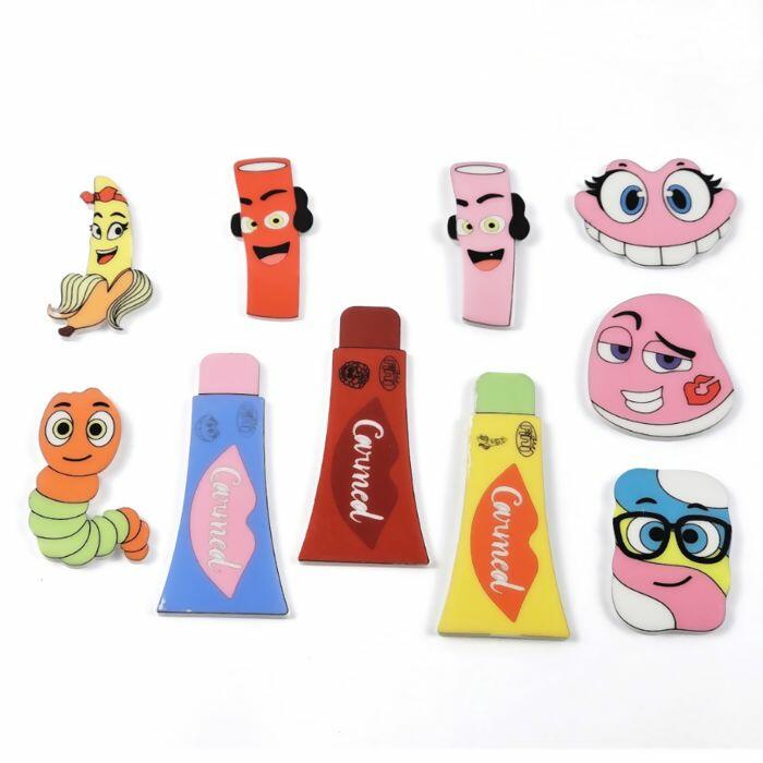 Kit com 10 apliques acrílicos sortidos com personagens inspirados nos doces Fini e nos balmes Carmed. As peças são coloridas, divertidas e com acabamento emborrachado, ideais para personalização de tiaras, laços, estojos, chinelos, capas de caderno e muito mais. Escolha o modelo desejado na variação do produto.