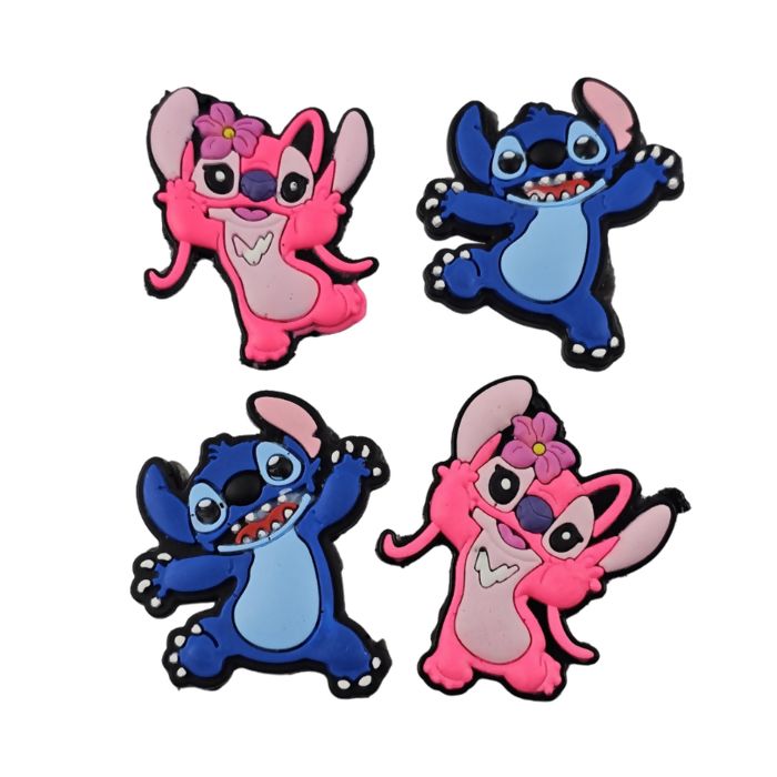 Pacote com 50 apliques emborrachados nos modelos Stitch e Angel. Medindo aproximadamente 45mm, são coloridos, divertidos e ideais para personalização de peças artesanais e infantis.