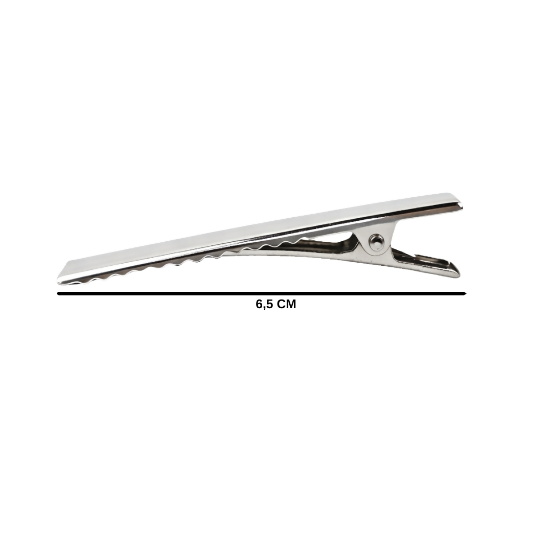 Os Bicos de Pato 6,5 cm na cor prata são ideais para a produção de laços e acessórios de cabelo. Fabricados em metal resistente, possuem design funcional com dentinho interno que proporciona melhor fixação, garantindo praticidade e segurança no uso.