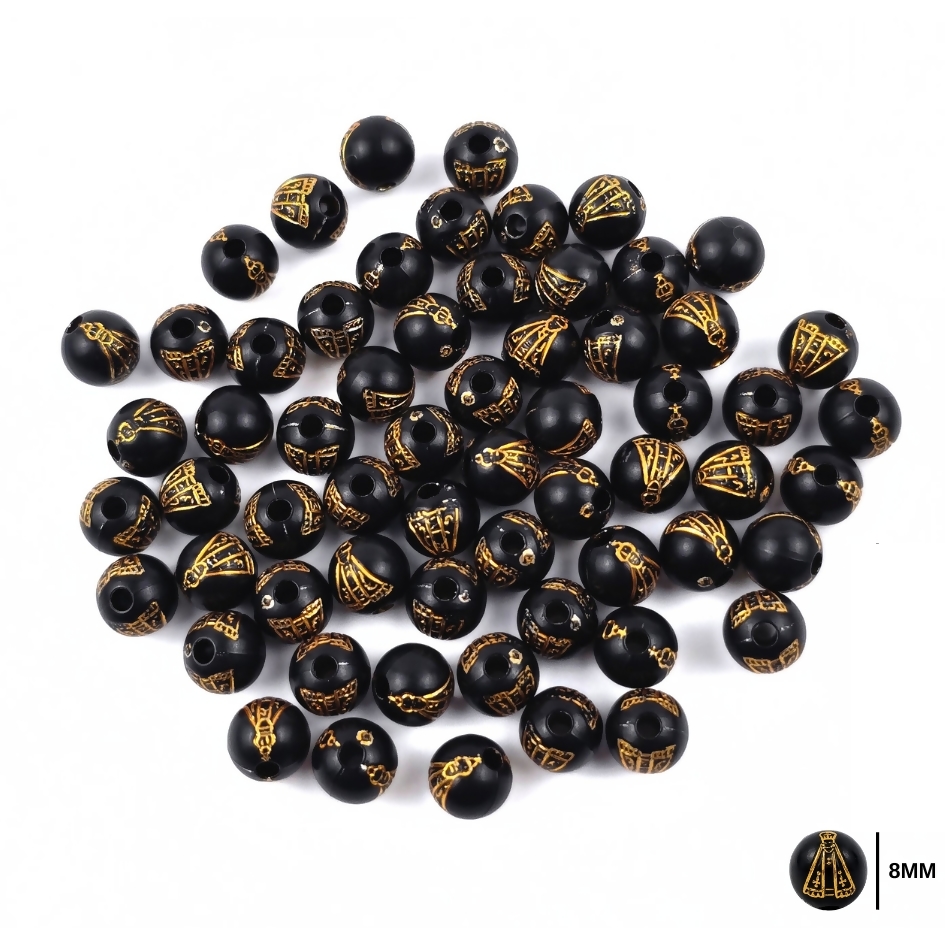Ficha Técnica: Tamanho 8mm. Modelo bola com desenho de Nossa Senhora. Embalagem com 500 gramas. Produto indicado para montagem de peças religiosas e artesanato em geral.