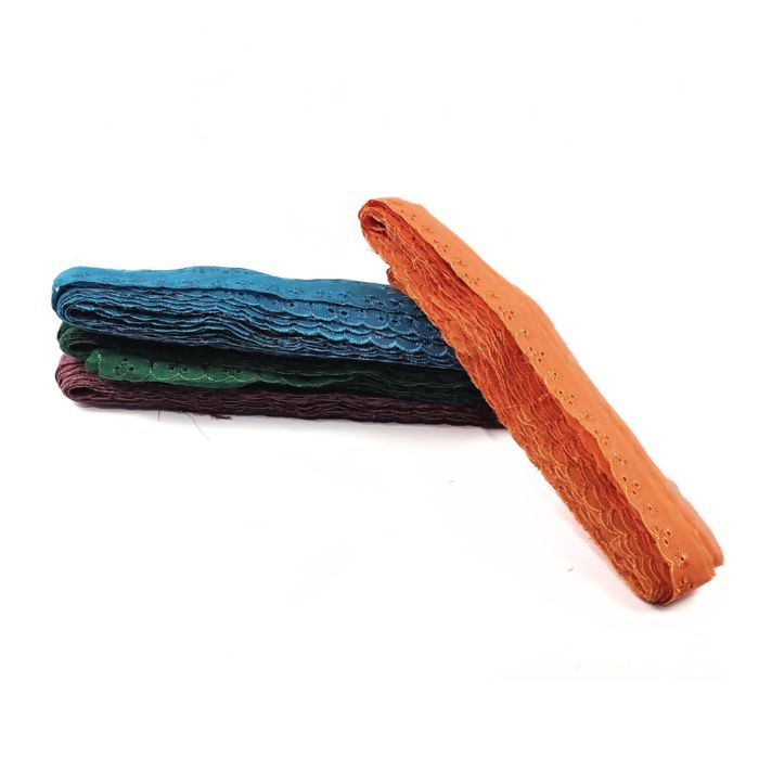 Bordado inglês misto, indicado para barrados em toalhas, confecções e etc. Um item que faz toda a diferença na peça confeccionada.