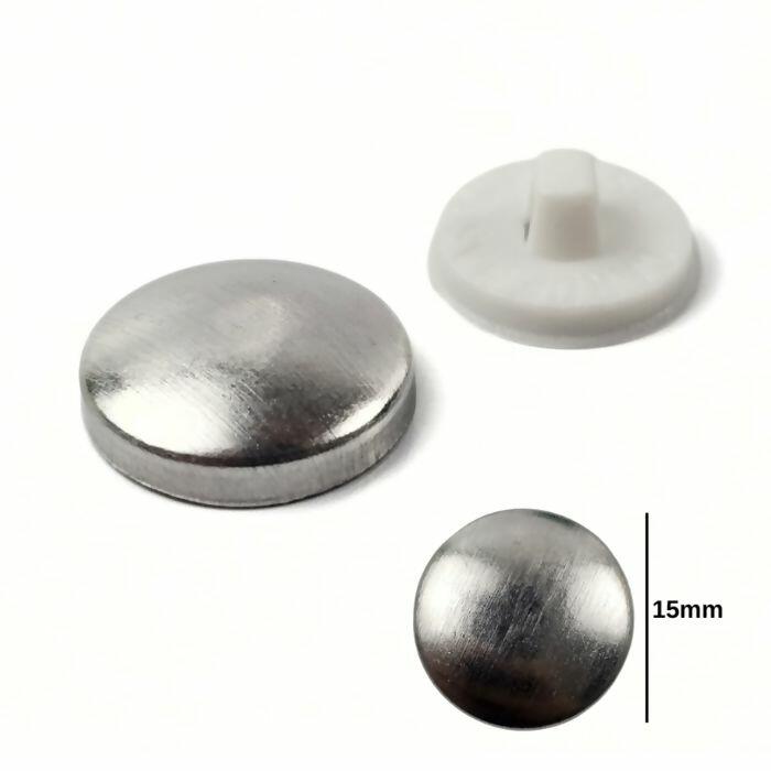 Feito com pé plástico branco e concha de alumínio, o Botão Bombe 16mm é leve, resistente e ideal para forração. Sua composição proporciona praticidade e acabamento de qualidade para confecção, estofaria, artesanato e outros usos. Fabricado com material sustentável, é uma opção funcional e ecologicamente consciente.