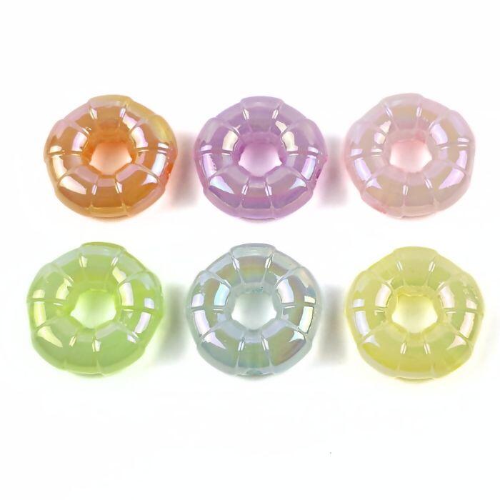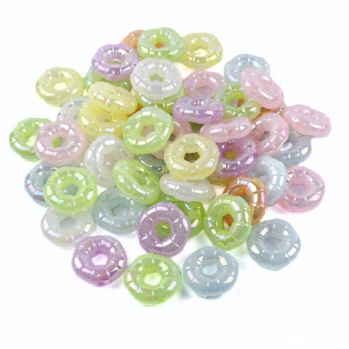 O Entremeio Boia Irisado é um acessório decorativo confeccionado em plástico de alta qualidade, disponível em cores variadas. Seu formato circular com textura segmentada lembra uma boia inflável, proporcionando um efeito iridescente que reflete a luz de forma delicada e charmosa. Ideal para agregar um toque diferenciado a artesanatos e bijuterias.
