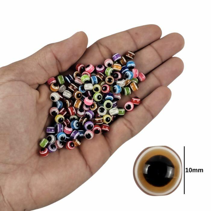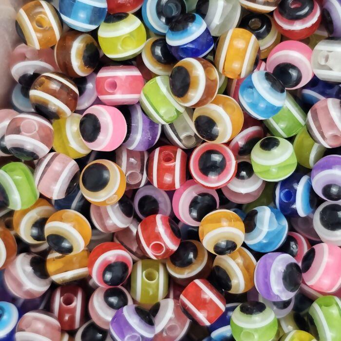 Entremeio Olho Grego em acrílico com 6 mm, colorido e vibrante. Embalagem com 1.000 unidades, ideal para peças artesanais com proteção e estilo. Leve, resistente e com ótimo acabamento.