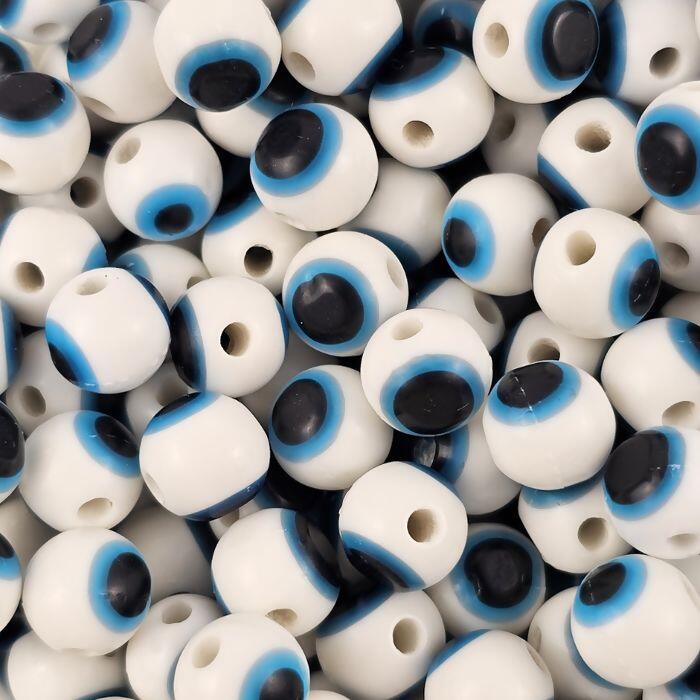 Entremeio Olho Grego com 8 mm de diâmetro, produzido em resina de alta qualidade. Embalagem com 1.000 unidades. Visual brilhante e bem acabado, ideal para peças artesanais com significado de proteção e estilo moderno.