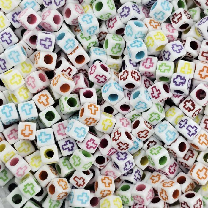 Entremeio Quadrado com símbolo de cruz, medindo 6 mm. Fabricado em plástico resistente e acabamento detalhado. Embalagem com 500 unidades, ideal para projetos com significado religioso ou espiritual.