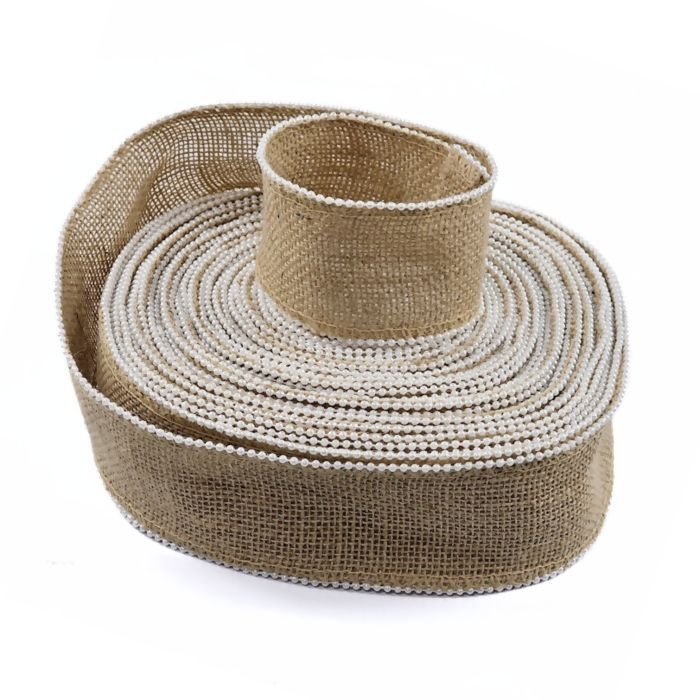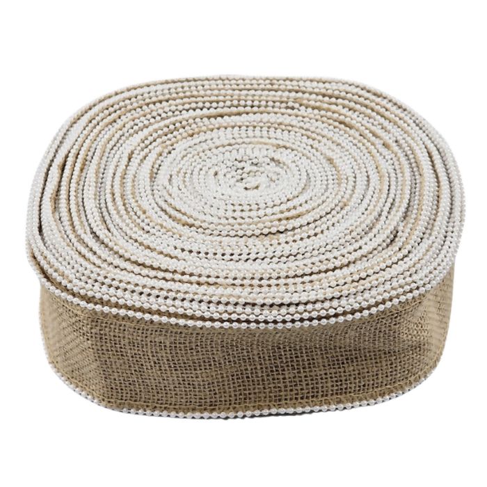 Descrição Fita De Juta Bege Com Perola Branca Lateral 60mm C/25 Metros