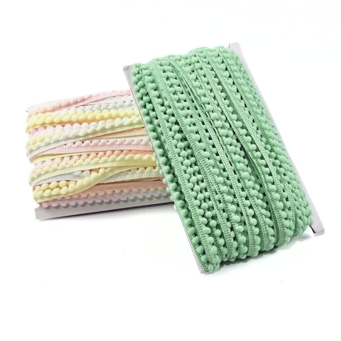 A fita de pompom de 10mm é um detalhe encantador e versátil, ideal para adicionar charme e sofisticação a diversos projetos. Sua largura delicada e pompons minúsculos oferecem um toque de diversão e estilo, seja em roupas, acessórios, artesanato ou decoração. A textura suave e macia dos pompoms proporciona uma sensação tátil agradável, enquanto sua flexibilidade facilita a aplicação em diferentes superfícies e materiais. Uma opção perfeita para personalizar e embelezar peças com um acabamento elegante.