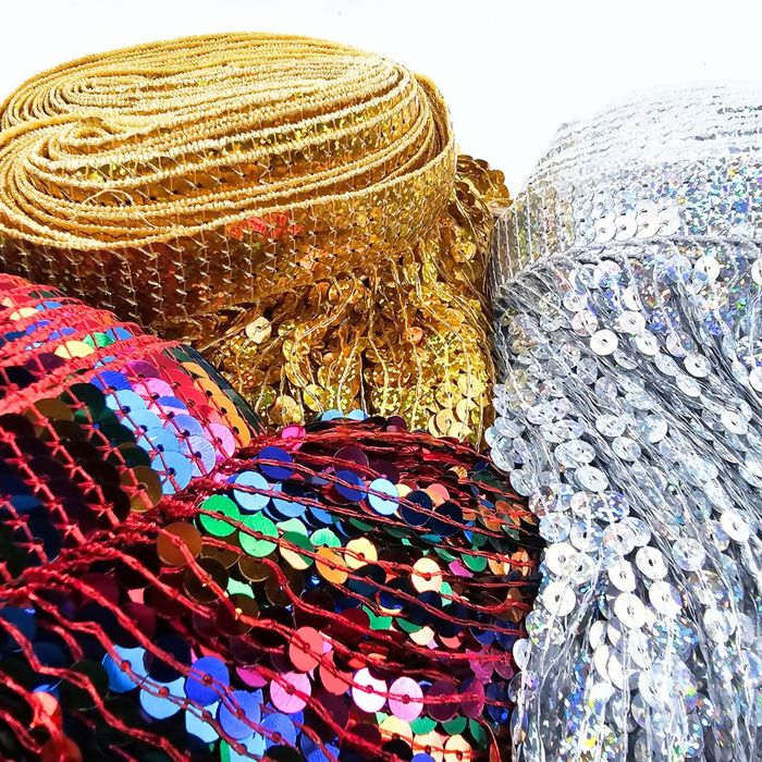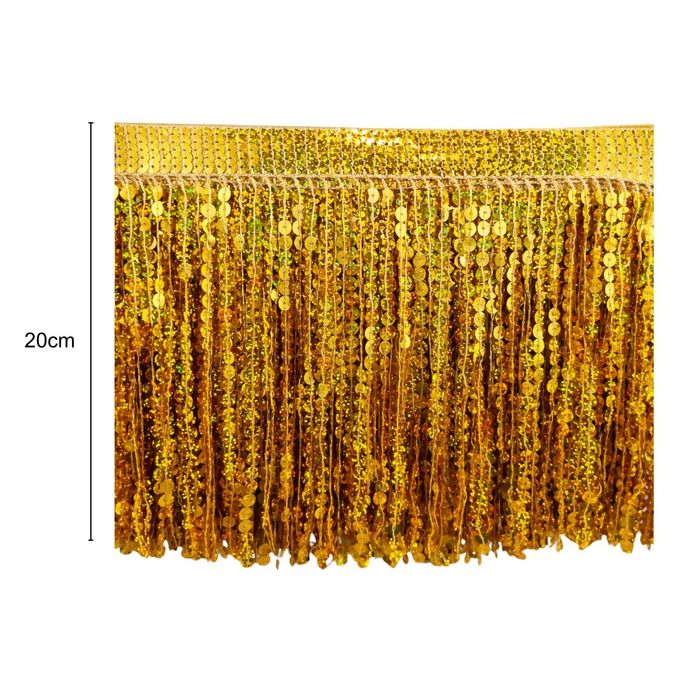 Franja de Paetê 20cm em rolo com 10 jardas, perfeita para dar brilho, movimento e um acabamento sofisticado em roupas, fantasias e peças decorativas. Ideal para carnaval, dança, shows e customizações, criando um efeito visual marcante com alto destaque.