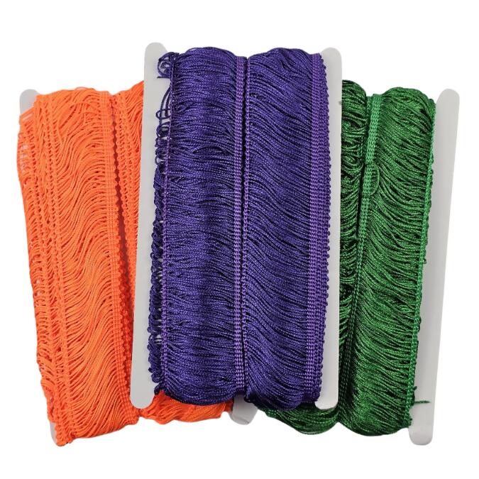 Franja decorativa com 5 cm de largura, rolo com 10 metros. Produzida em poliéster, leve e resistente, ideal para acabamento em roupas, fantasias, artesanato e decoração criativa.