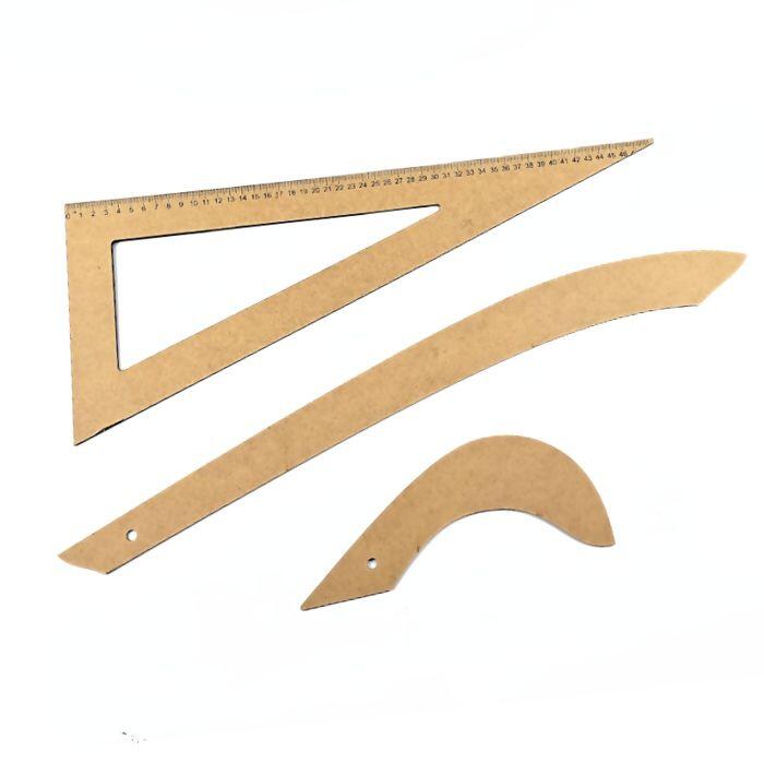 Kit Conjunto de Reguas Para Costura e Modelagem em Mdf C/3 Peças