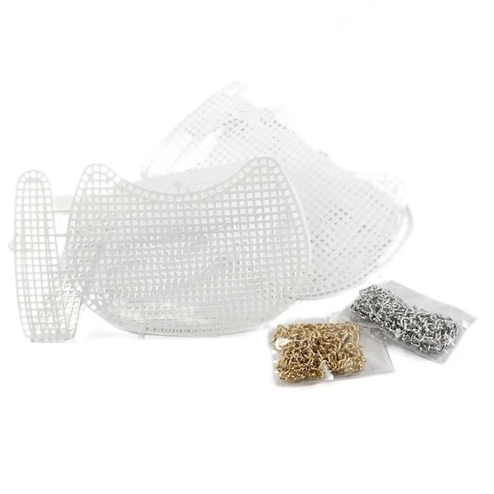 Dê asas à sua criatividade com este kit DIY para montagem de bolsa em tela plástica! Com tela branca estruturada, corrente metálica, agulha e acessórios de montagem, este kit é perfeito para quem ama criar bolsas exclusivas com bordados em ponto russo, crochê ou tapeçaria. Ideal tanto para artesãs iniciantes quanto experientes.