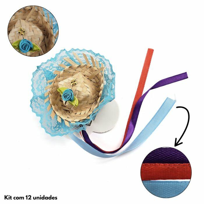Descrição Mini Chapéu de Palha Junino com Bico de Pato C/12 Unidades