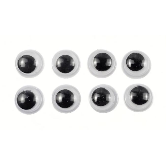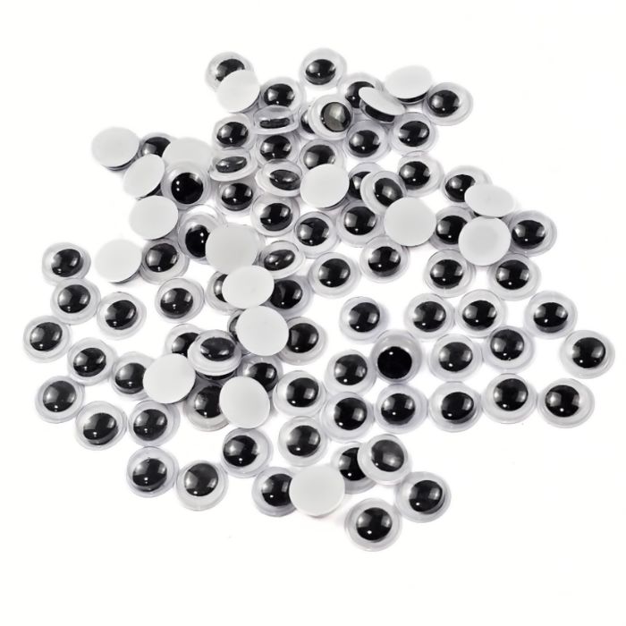 Olho móvel de 8 mm, leve e divertido, ideal para dar vida a trabalhos artesanais e educativos. Embalagem com 100 unidades, perfeito para personalização criativa.