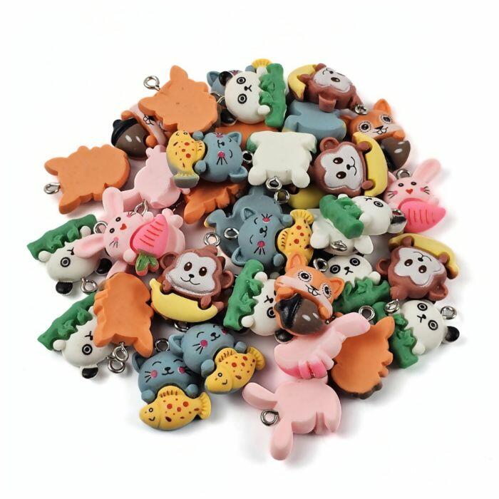 O Pingente Animais Color 20x24mm, produzido em resina, é ideal para confecção de chaveiros, lembrancinhas, enfeites de lustres, decorações temáticas e artesanatos em geral. Com cores variadas e formatos de animais, traz um toque divertido e criativo para suas peças.