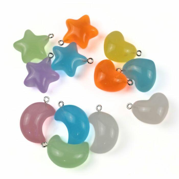 Pingente em resina fluorescente com 23 mm, ideal para dar brilho e destaque em criações artesanais. Embalagem com 100 unidades em cores vibrantes e acabamento chamativo, perfeito para peças modernas e divertidas.