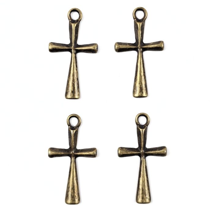 Pingente Entremeio+Crucifixo Metal (M) 3,7Cm C/10 Pares Ouro Velho