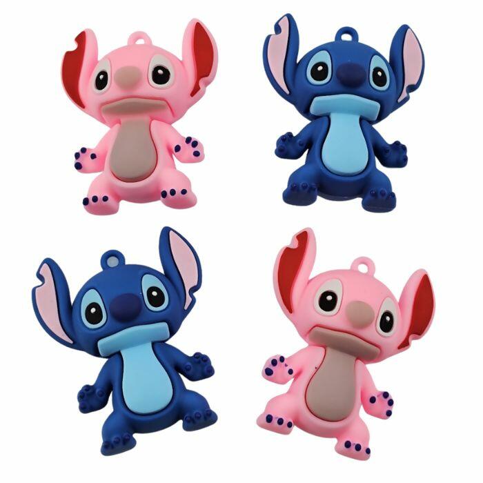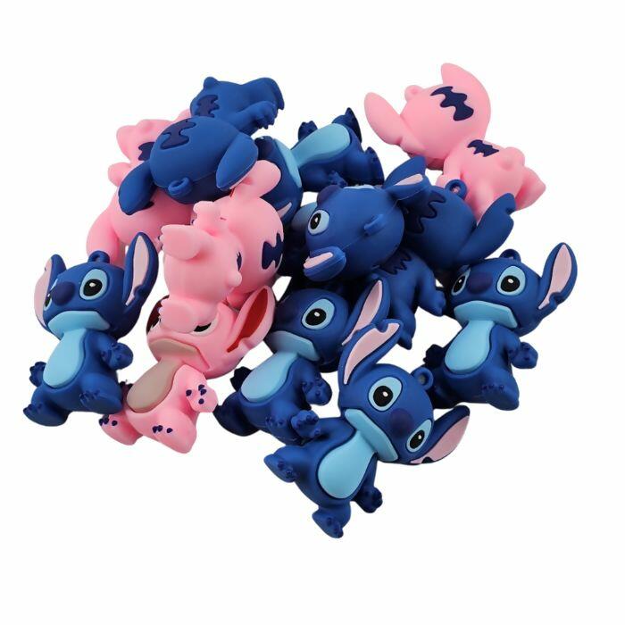 Pacote com 12 pingentes de PVC no formato dos personagens Stitch e Angel, com acabamento emborrachado e rico em detalhes. Ideal para personalização de chaveiros, estojos, mochilas, lembrancinhas e acessórios em geral.