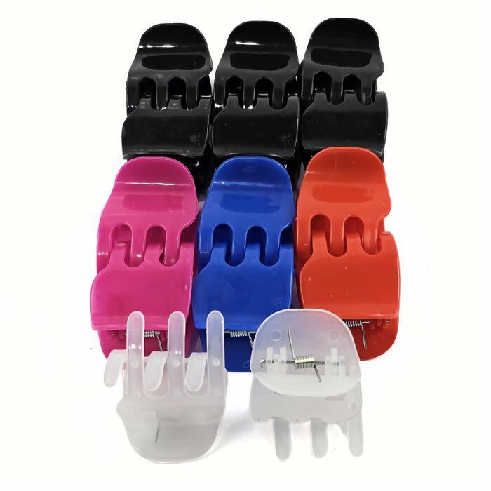 Piranha plástica tamanho médio, medindo 3x4,5 cm, resistente e prática para prender e modelar os cabelos. Embalagem com 12 unidades em cores sortidas, ideal para uso diário ou profissional.