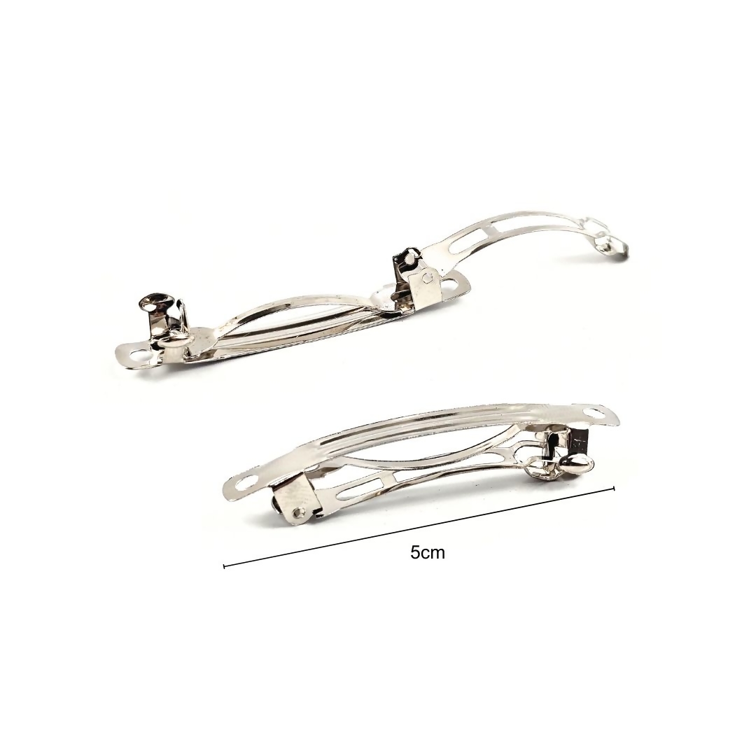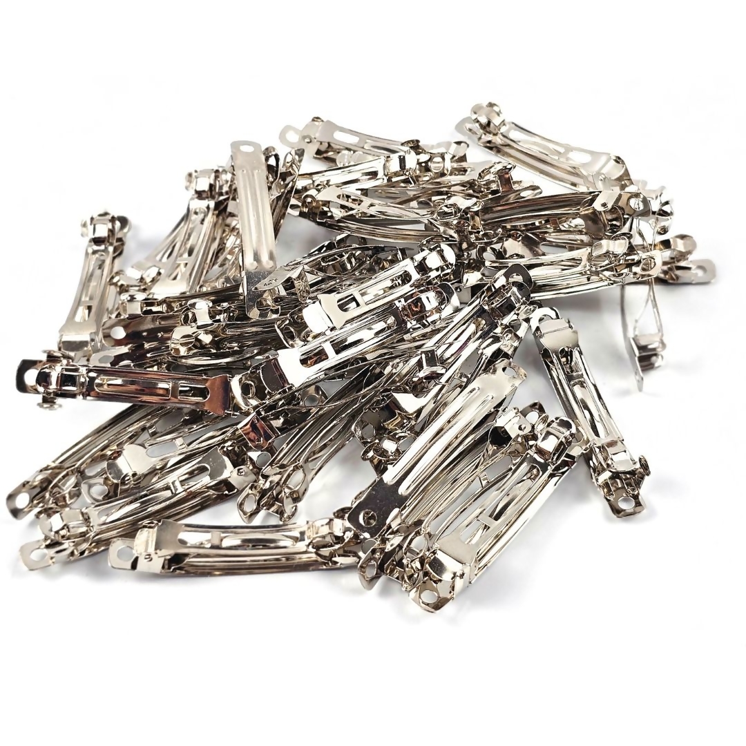 Presilha Francesa de Cabelo em metal com garra, tamanho 5cm, pacote com 100 unidades. Ideal para montagem de laços, tiaras e acessórios de cabelo, oferecendo boa fixação, praticidade e acabamento profissional para produção artesanal e revenda.