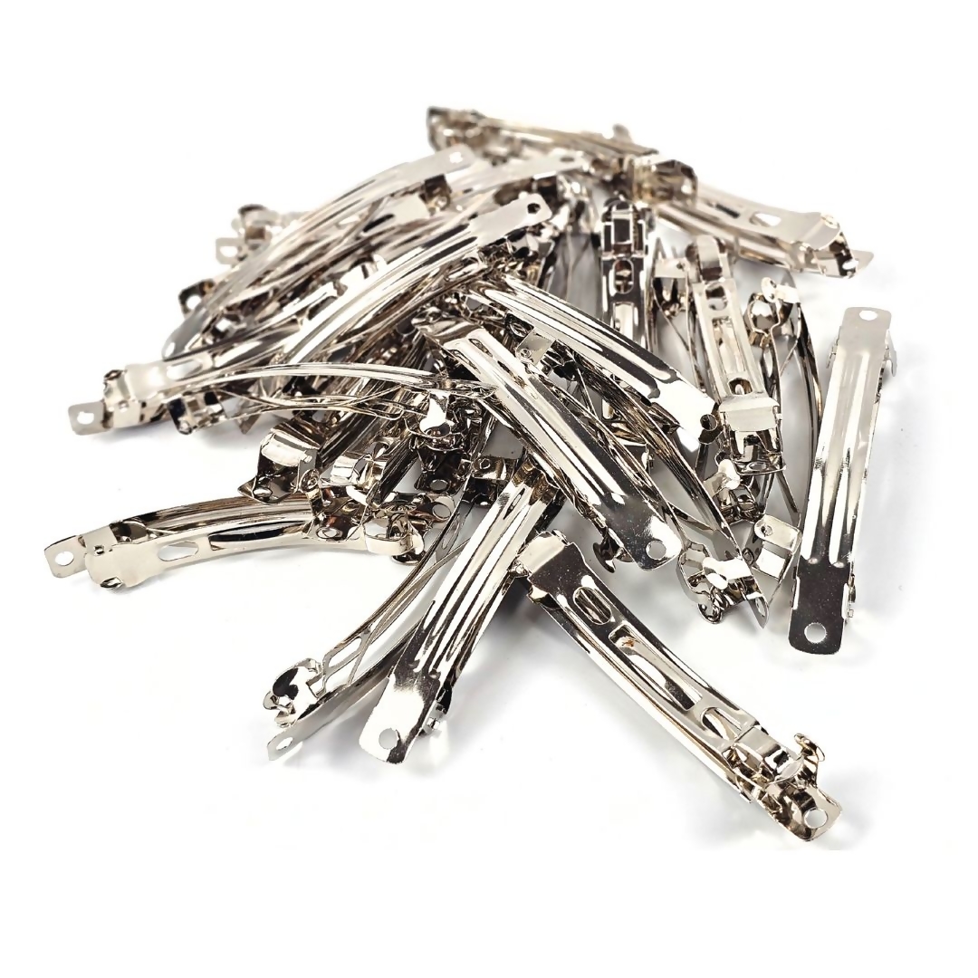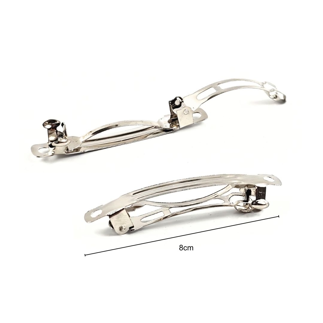 Presilha Francesa de Cabelo em metal com garra, tamanho 8cm, pacote com 100 unidades. Ideal para montagem de laços, tiaras e acessórios de cabelo, oferecendo boa fixação, praticidade e acabamento profissional para produção artesanal e revenda.