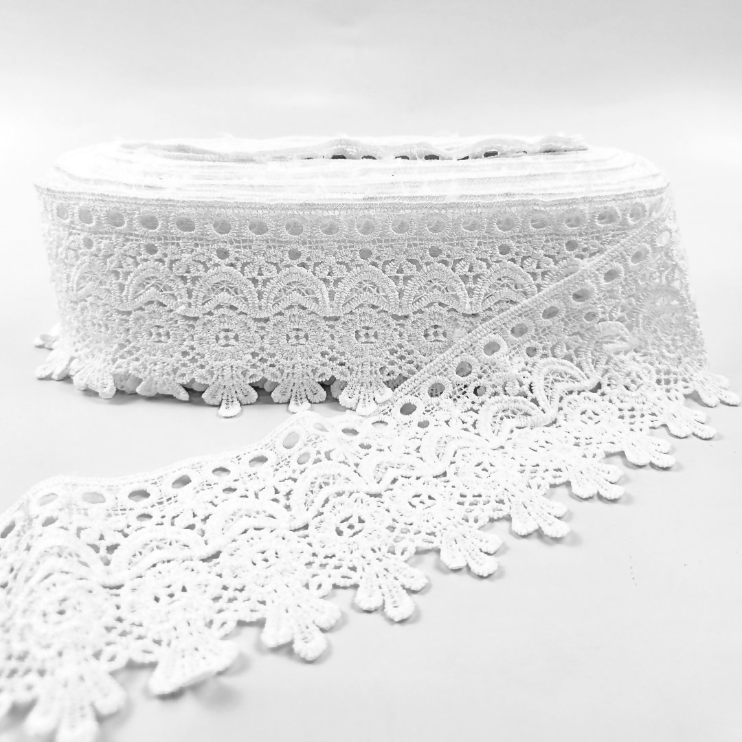 Renda Guipir 8,8cm em rolo com 15 jardas, ideal para acabamento sofisticado e de alto impacto em peças de moda e decoração. Por ser uma renda encorpada, valoriza barras e detalhes, trazendo um visual elegante e premium para suas criações.