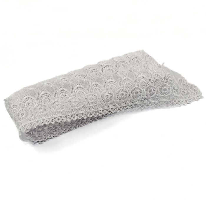 Renda guipir encorpada com design marcante, ideal para dar destaque em acabamentos e detalhes elegantes. Combina sofisticação e versatilidade em diversas aplicações.