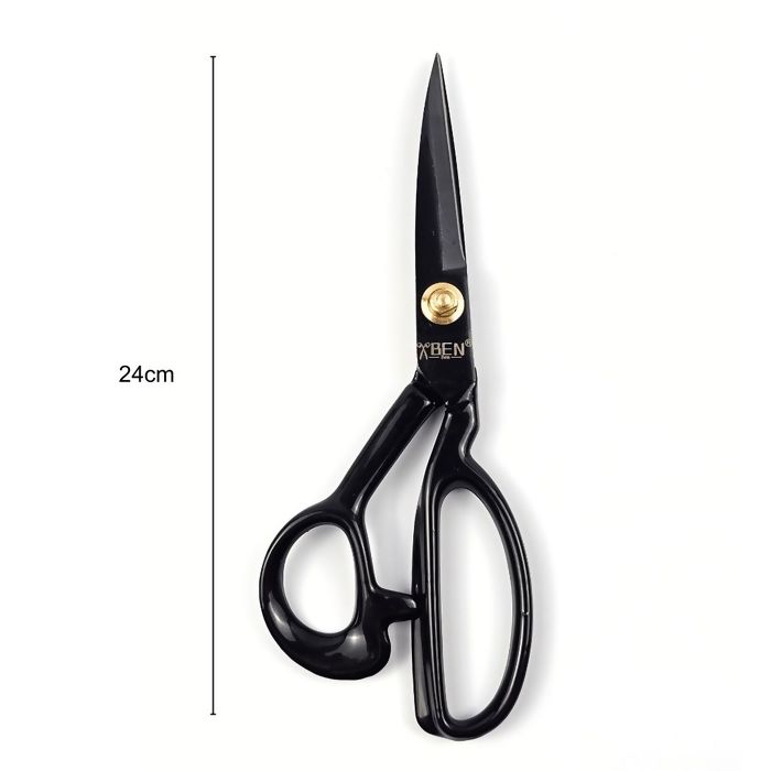 Tesoura de Alfaiate Profissional 24cm Preta, desenvolvida para cortes firmes e precisos em tecidos. Ideal para costura, confecção e trabalhos de modelagem, oferece melhor controle no manuseio e um acabamento mais limpo, facilitando o dia a dia de quem trabalha com corte.