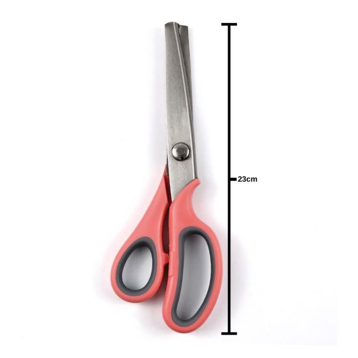 A Tesoura de Picote Zig Zag Ondinhas foi desenvolvida com alto padrão de qualidade, ideal para cortes precisos em diversos materiais, como tecido, papel, couro e PVC. Possui lâminas afiadas em aço inoxidável e cabo ergonômico com revestimento em silicone, proporcionando conforto e praticidade no uso. Seu design permite um acabamento personalizado, perfeito para trabalhos de artesanato e costura.