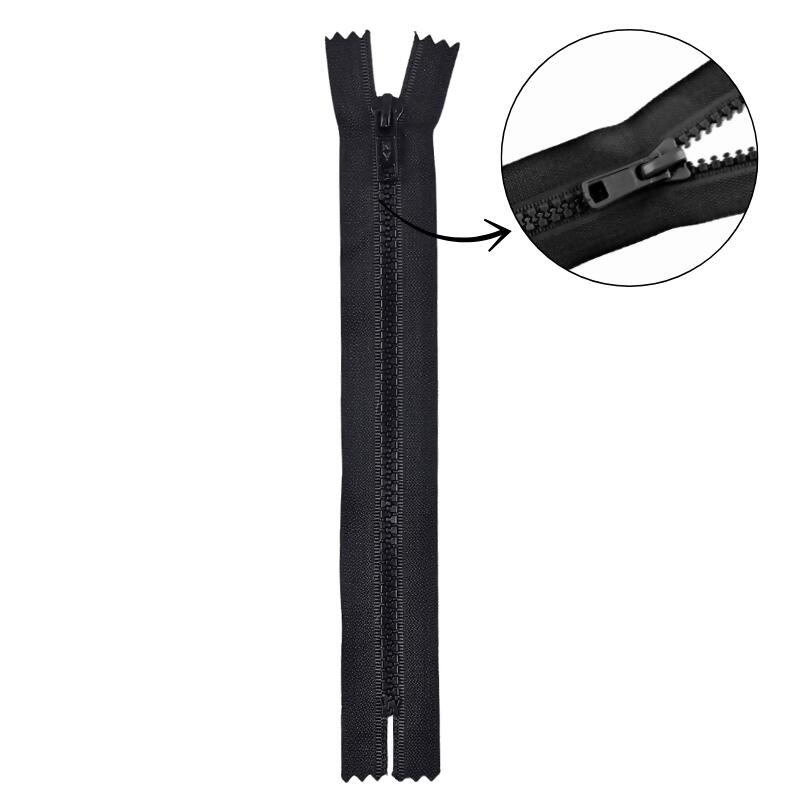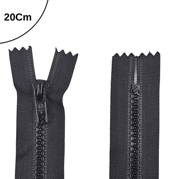 Zíper Vislon fixo tamanho 20, resistente e de alta qualidade, ideal para confecção e reparo de calças, saias, vestidos, bolsas e artesanato. Vendido por unidade.